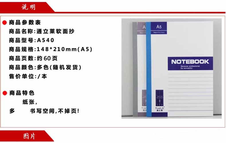 通立莱(Tonlil) A5-60 无线装订本/软面抄/记事本 A5 60页 10本/包