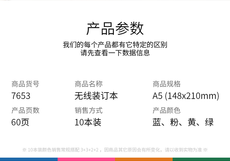 得力(deli) 7653 无线装订笔记本 10本A5/60 10本/包